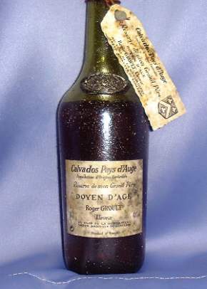 私の大好きなカルバドス。これは40年物くらいだと思う。自分の誕生日に自分にプレゼント。とてもまろやかで林檎の香りが素晴らしい!ストレートで、ちびちびと飲んでいます。もう買えないしネ。 |
