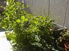 こちらはメキメキ育ったさやえんどう。花も咲いて実もなっているんだよ。