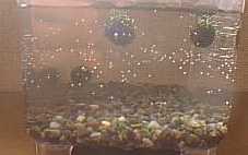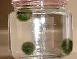 久しぶりにまりもたちを洗った。なんとか緑色して生きてるよ。ついでに直径を測ってみたところ、 「のりしお」1.3cm「ごましお」1.2cm「つぶしお」1.1cmだった。一時期は大きさが 同じだったのに、また三兄弟区別がつくぞ。 |
