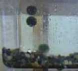 結局生き残ったのはつぶしおだけです。死んでしまったのりしお、ごましお。天国で巨大なまりもになってください。合掌。さて、つぶしおはまたパックマン状態です。でも水を取り替えると、気泡を付けるのでこいつはまだ元気そうだ。良かった。 |