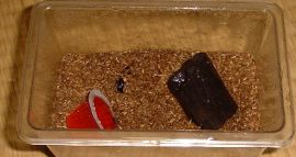 クワガッタンも冬眠を始めたのかもしれない。ゼリーの上辺り、黒いのがクワガッタンだよ。